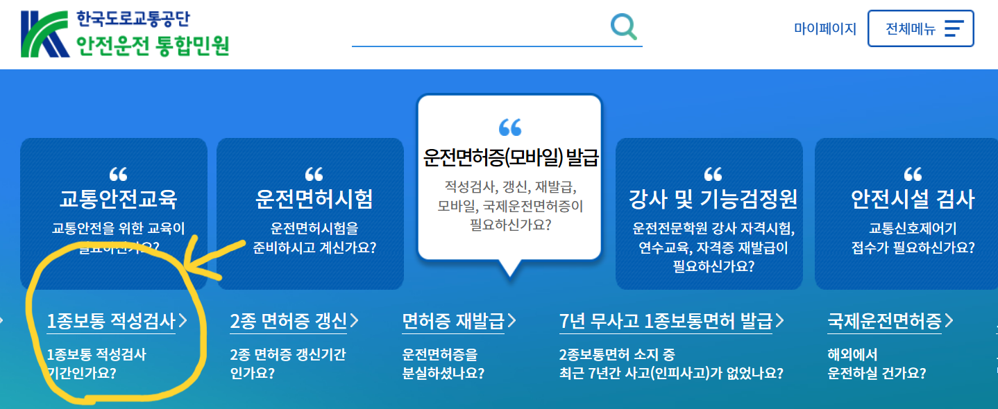 운전면허 갱신 - 제1종 자동차 운전면허증 적성검사